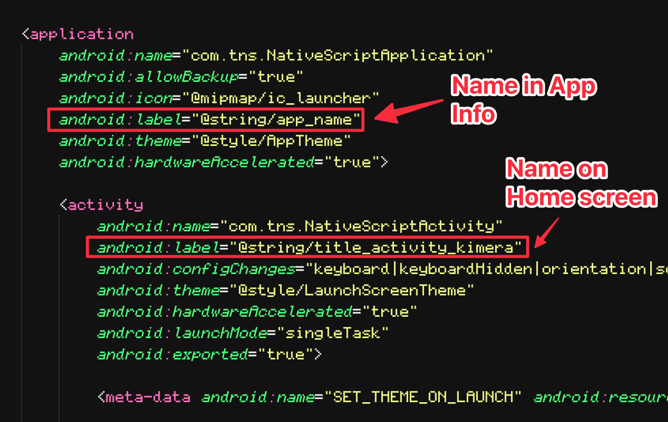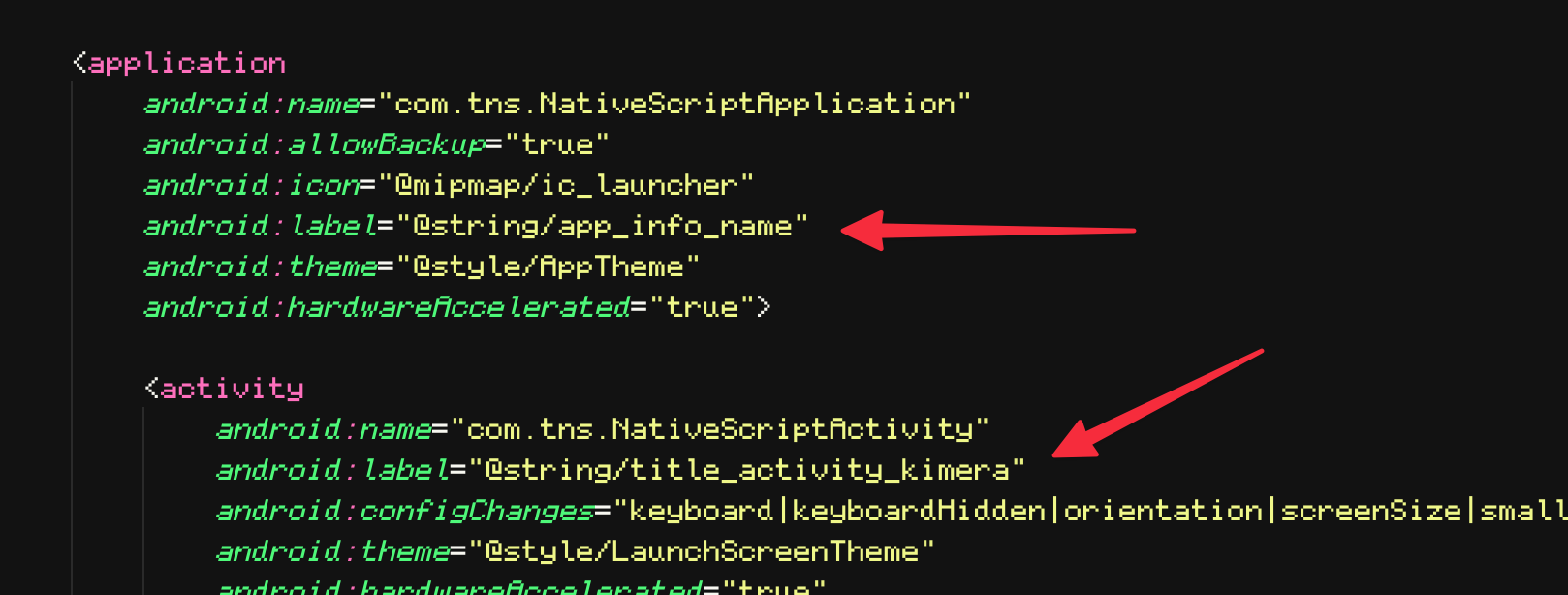 Then we now we can finally, override those placeholder by setting up App_Resources/Android/src/main/res/values/strings.xml